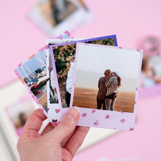 Druk je retro fotoafdrukken in Instant-stijl online af vanaf je sociale media, telefoon of computer. Selecteer gewoon foto's, pas de framekleuren aan en schrijf bijschriften met emoji's. ❤️ Print retrofoto's in 2 formaten en foto's in klassiek formaat in veel verschillende formaten. De afmetingen van de afgedrukte foto's kunnen licht variëren.